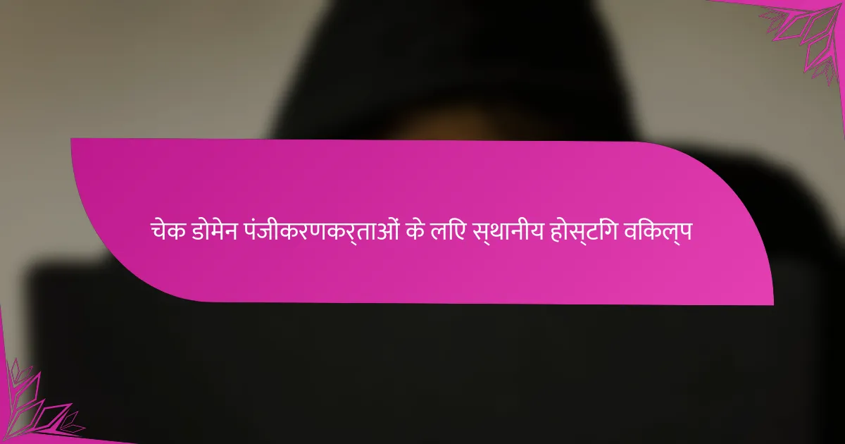 चेक गणराज्य में एक स्थानीय होस्टिंग प्रदाता का चयन करते समय कई प्रमुख कारकों का मूल्यांकन करना आवश्यक है, जिसमें मूल्य निर्धारण, ग्राहक समर्थन, और सर्वर स्थान शामिल हैं। ये तत्व यह सुनिश्चित करने में मदद करेंगे कि आपकी वेबसाइट कुशलता से काम करे और आपकी विशिष्ट आवश्यकताओं को पूरा करे।